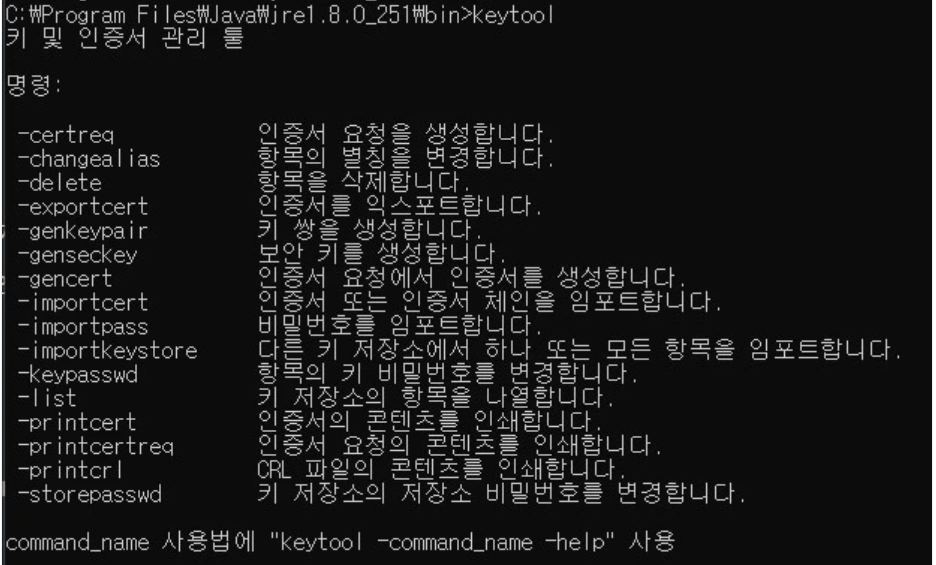 자바를 설치하면 JAVA_HOME\bin\keytool.exe 파일로 존재한다.