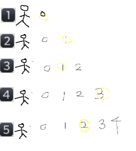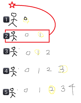학생들이 한 줄로 선 후, 첫번째 맨 앞의 학생은 무조건 0번 번호를 받아 제일 앞에 줄을 선다.